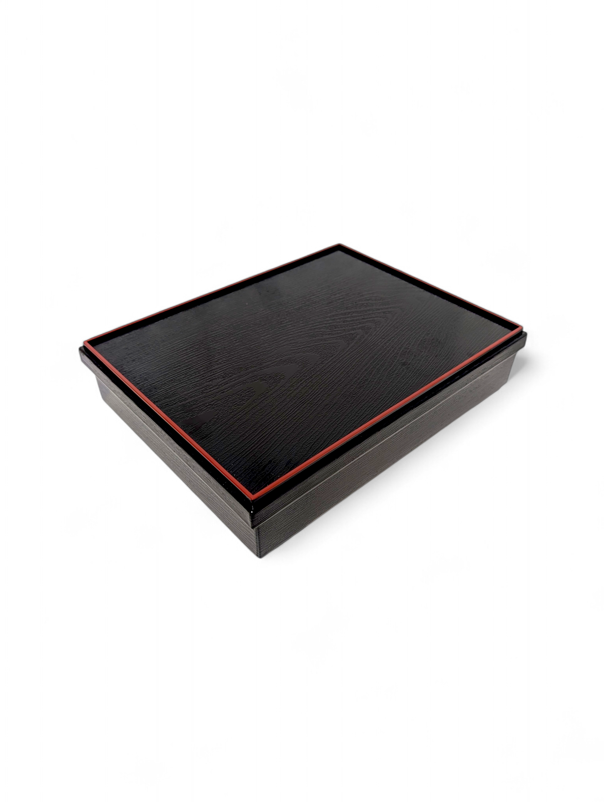 Den platta och stabila formen gör lådan enkel att packa i väska eller ryggsäck. Den fungerar lika bra för japansk mat som sushi, onigiri och tempura, som för västerländska lunchrätter.